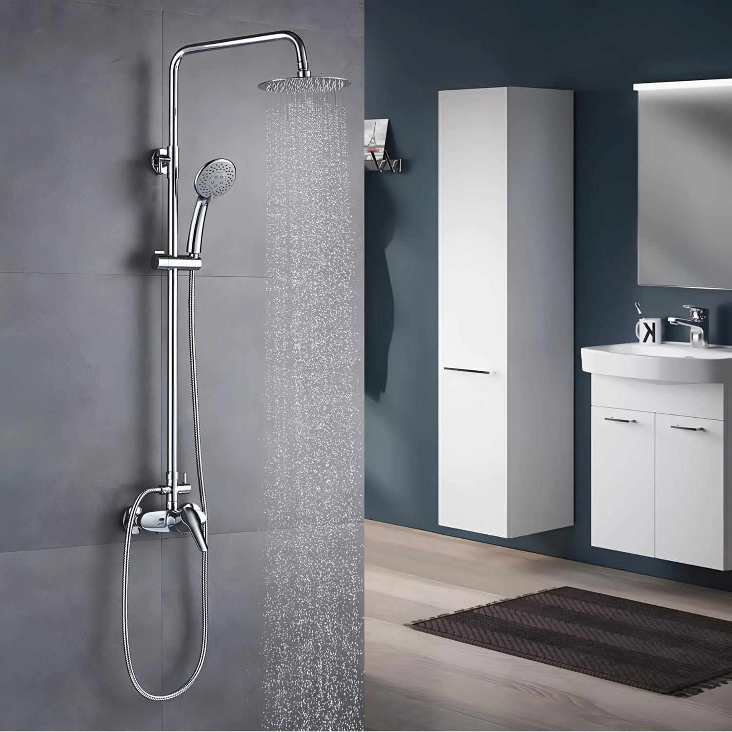 La columna de ducha incluye mezclador monocontrol, teleducha con 5 tipos de chorro y barra deslizante de 115 cm con soporte giratorio para ajuste de altura. Su acabado cromado multicapa ofrece durabilidad y resistencia a la corrosión, ideal para modernizar tu baño con funcionalidad y estilo. Fabricada en acero y ABS, incorpora cabezal de ducha, desviador, manguera y jabonera. Garantía de 1 año por defectos de fábrica en su funcionamiento, respaldando la calidad del producto.