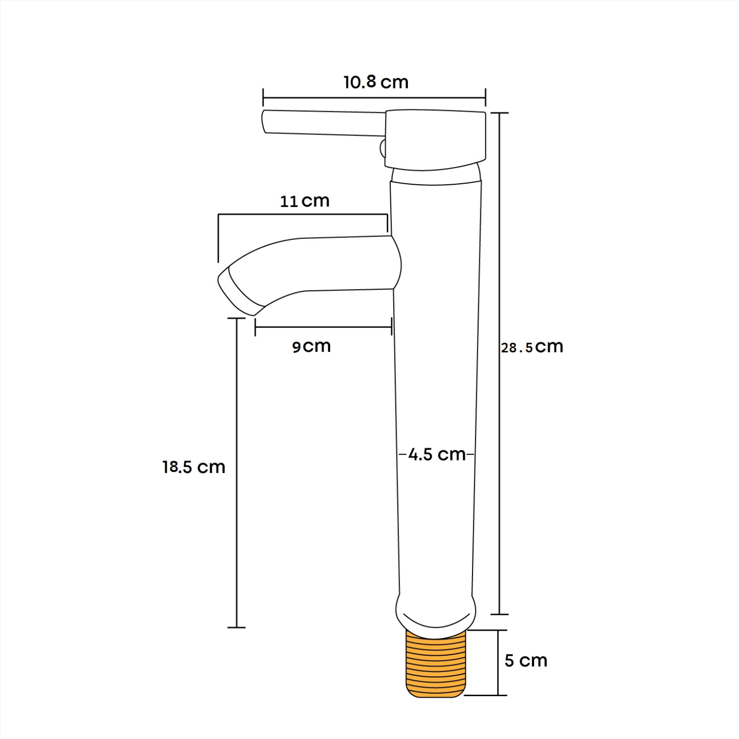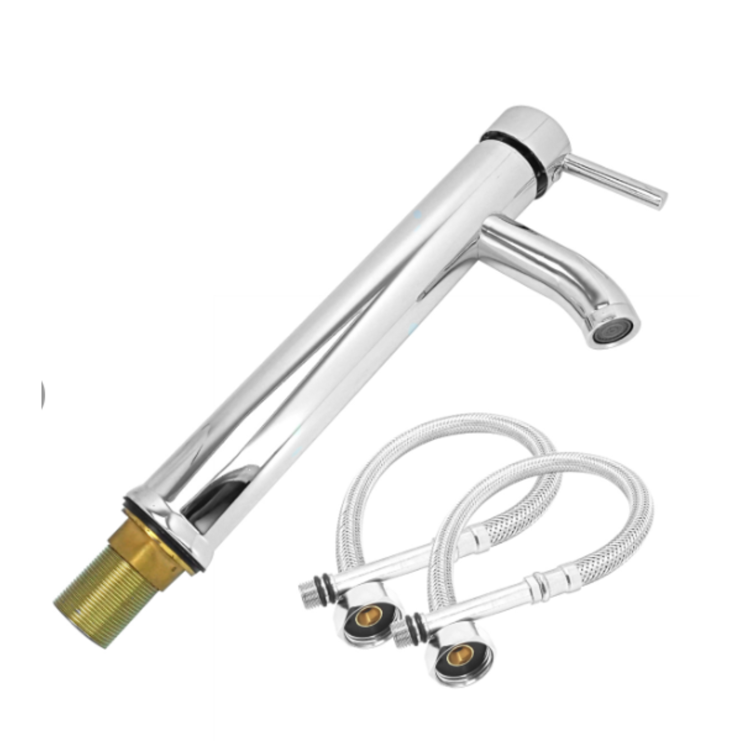 La grifería alta monocontrol para lavamanos con mezclador y pico semicurvo en acabado cromo brillante garantiza un manejo sencillo y eficiente del agua fría y caliente mediante una sola palanca. Fabricada en zamak, esta pieza de 28,5 cm de altura cuenta con una salida tipo regadera que ofrece una dispersión amplia y previene salpicaduras. Su sistema de sellado antirresiduos asegura durabilidad y buen rendimiento. Ideal para instalación en un solo orificio, incluye acoples y herrajes para una conexión rápida y segura de 1/2 - 3/8 pulgadas. Garantía de 1 año por defectos de fábrica.
