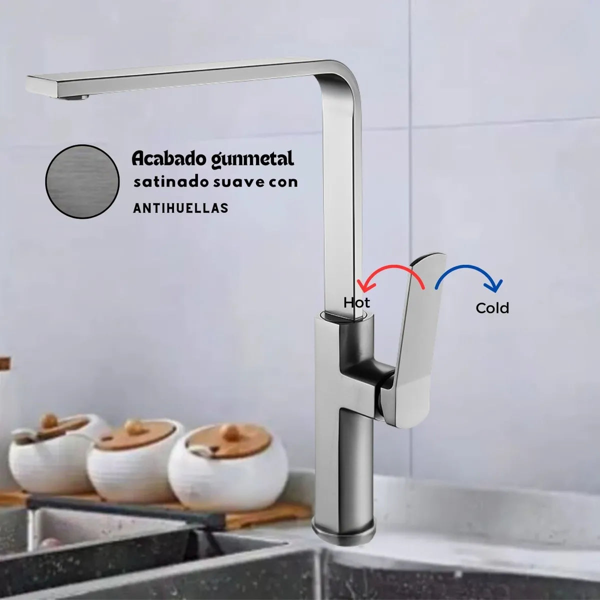 Fabricada en metal de alta resistencia, esta grifería garantiza durabilidad y solidez. Aunque no incorpora cartucho cerámico, su mecanismo manual ofrece un flujo constante de agua de hasta 10,5 litros por minuto, apto para trabajos que requieren rendimiento. Su conexión para agua fría y caliente añade versatilidad para adaptarse a diferentes necesidades de temperatura.