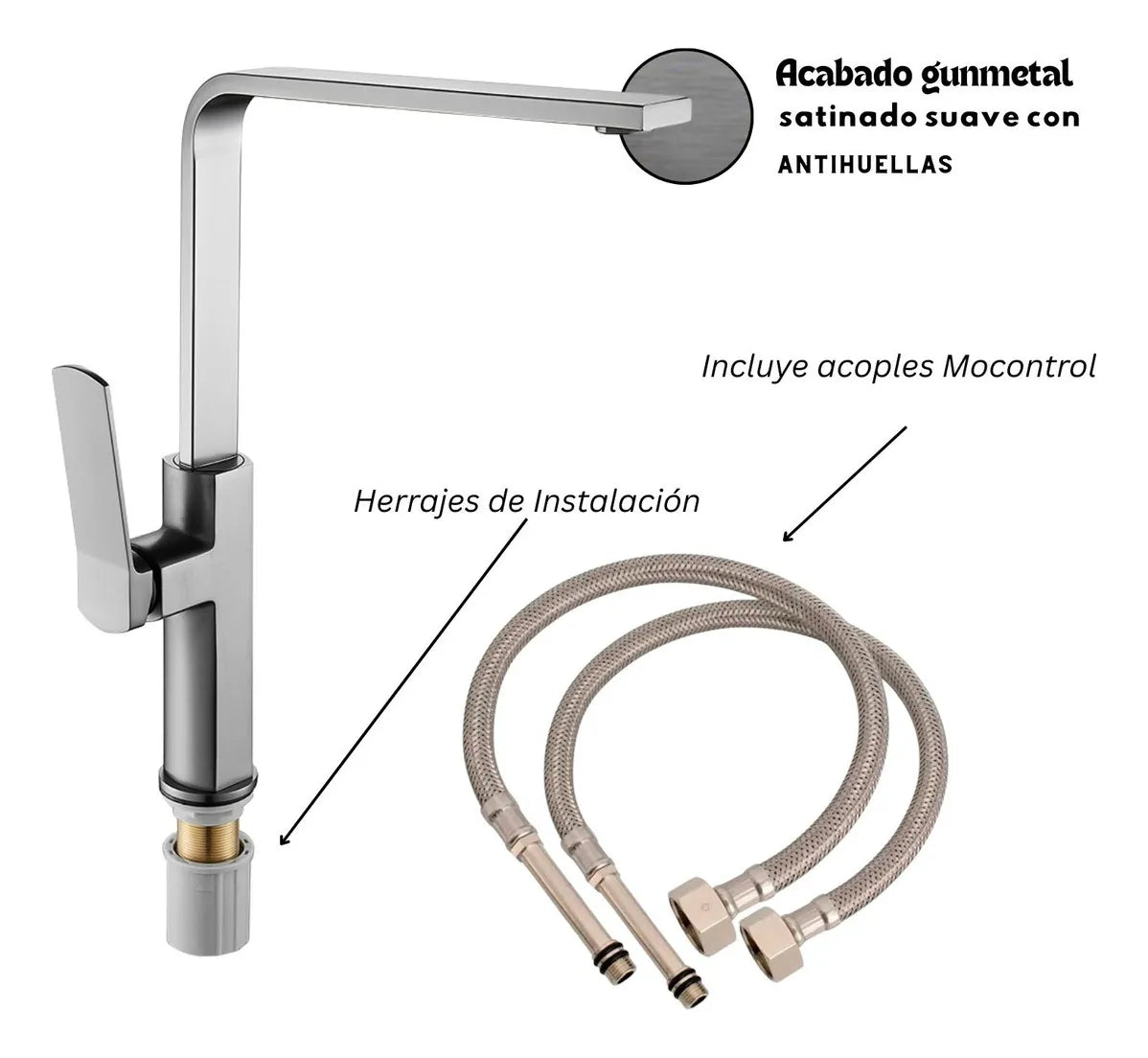 Grifería Kassel Monomando para Lavadero en acabado gris mate, diseñada para espacios funcionales y elegantes como lavaderos, cocinas utilitarias o zonas de trabajo. Su manija tipo palanca ofrece un manejo cómodo, intuitivo y preciso, ideal para un uso diario sin complicaciones. Con su altura elevada, permite llenar baldes y barriles con facilidad y ofrece un alcance amplio para tareas de limpieza.