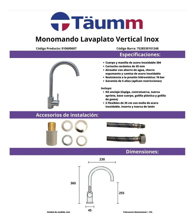 Todos nuestros productos cuentan con garantía por defectos de fábrica. La garantía no cubre daños ocasionados por mal uso, instalación inadecuada o manipulación indebida. El cliente es responsable del envío del producto para hacer efectiva la garantía.