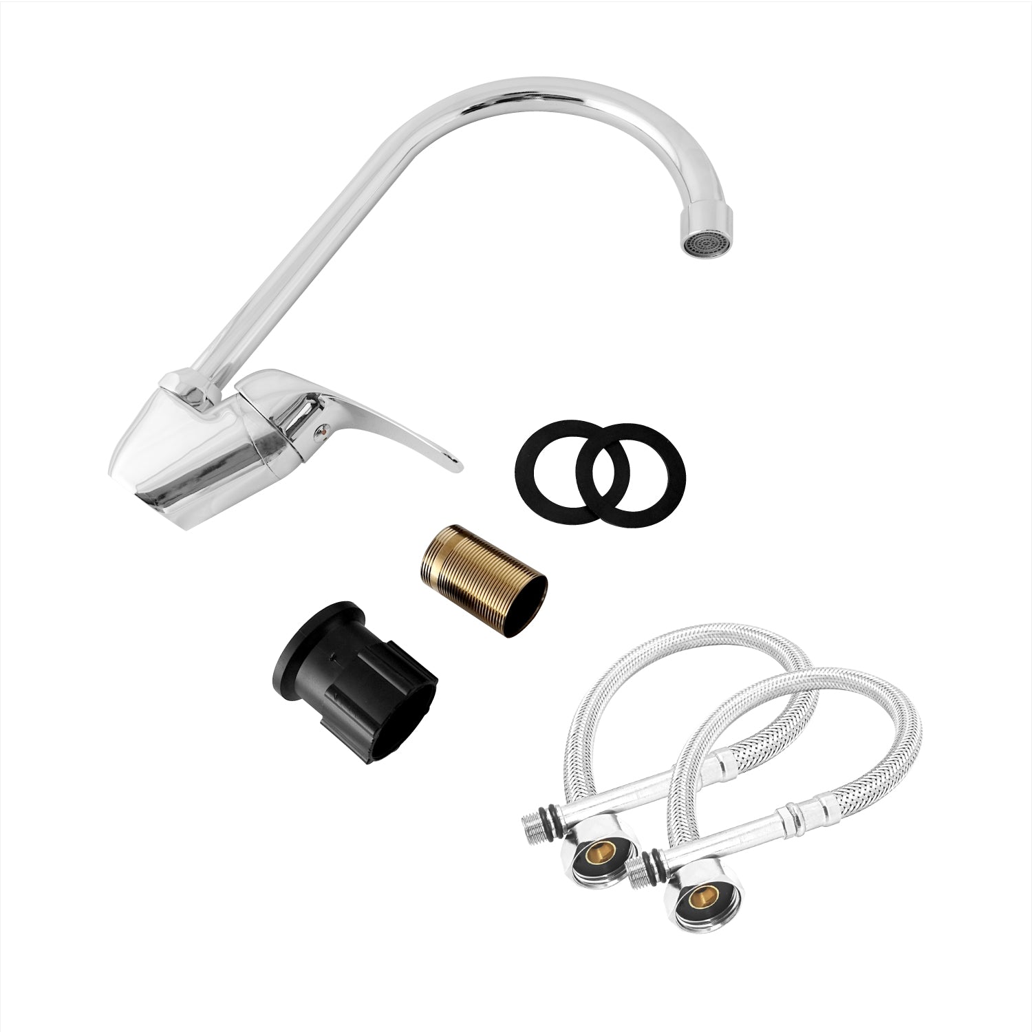 Grifería monomando vertical para lavaplatos diseñada para brindar elegancia estilo moderno y un flujo de agua cómodo y estable Su cuello tipo ganso aporta altura y movilidad permitiendo mayor maniobrabilidad en la cocina Fabricada en materiales resistentes que garantizan durabilidad y excelente desempeño