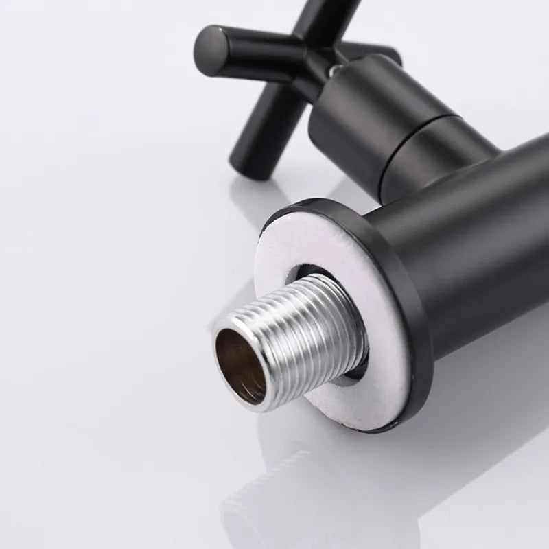 Grifo de lavabo montado en pared fabricado en metal de gran resistencia con acabado plateado brillante diseño clásico con manijas en cruz que ofrecen comodidad y control exacto de la temperatura y el caudal de agua aporta un estilo limpio y atemporal perfecto para baños modernos y tradicionales de fácil instalación y mantenimiento.