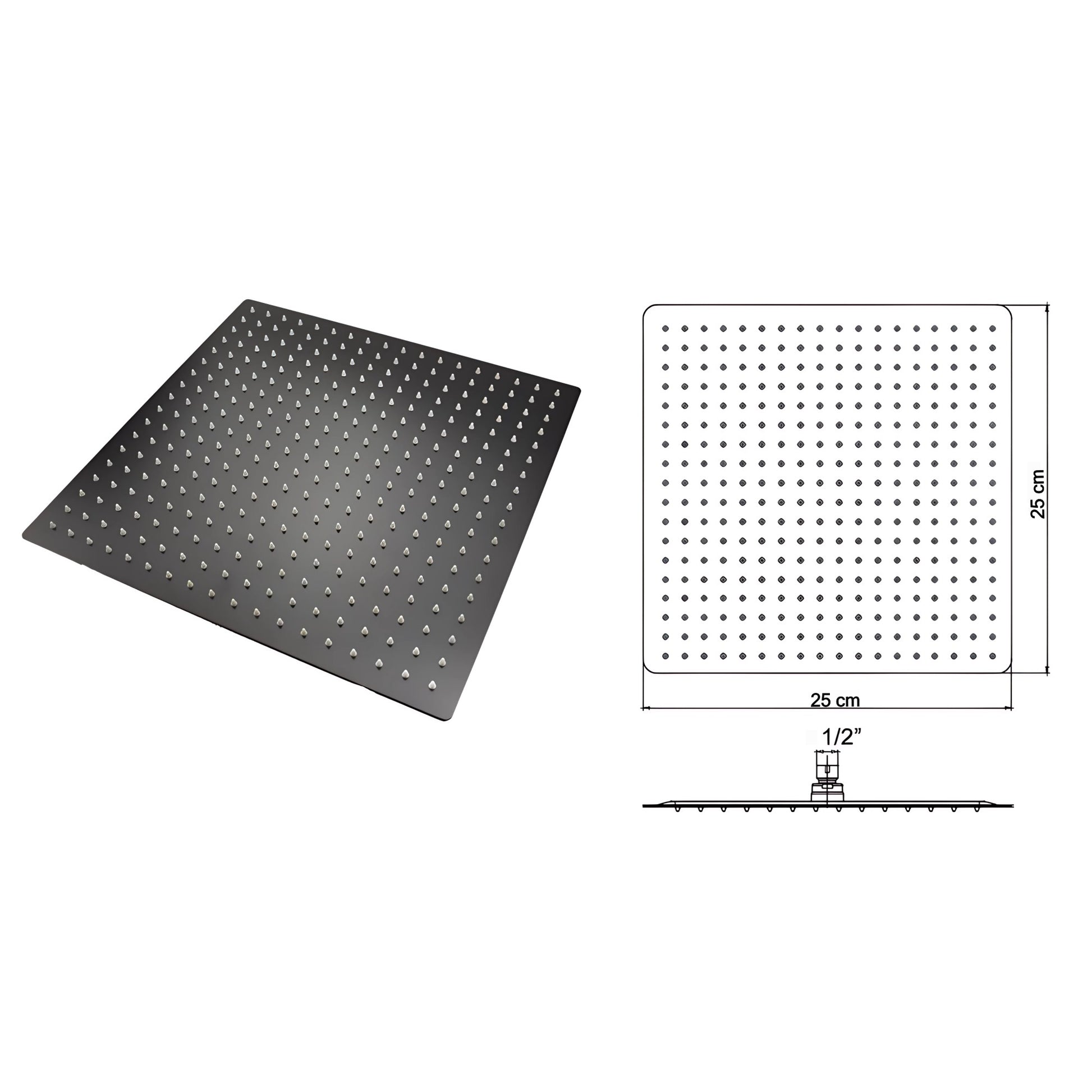 - Medidas del rociador: 25 cm (largo) x 25 cm (ancho) x 4 cm (alto)