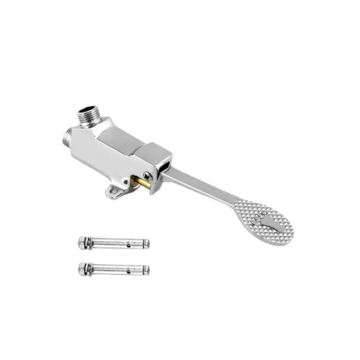 Esta llave de pedal ofrece una solución eficiente, moderna y sanitaria para cualquier entorno profesional o doméstico. ¡La forma más práctica de controlar el agua sin usar las manos!Mejora la higiene y el ahorro de agua con esta válvula de pedal para lavamanos o lavaplatos diseñada para entornos donde la limpieza es prioritaria Con su sistema manos libres puedes controlar el flujo de agua presionando el pedal con el pie sin necesidad de tocar grifos o manijas