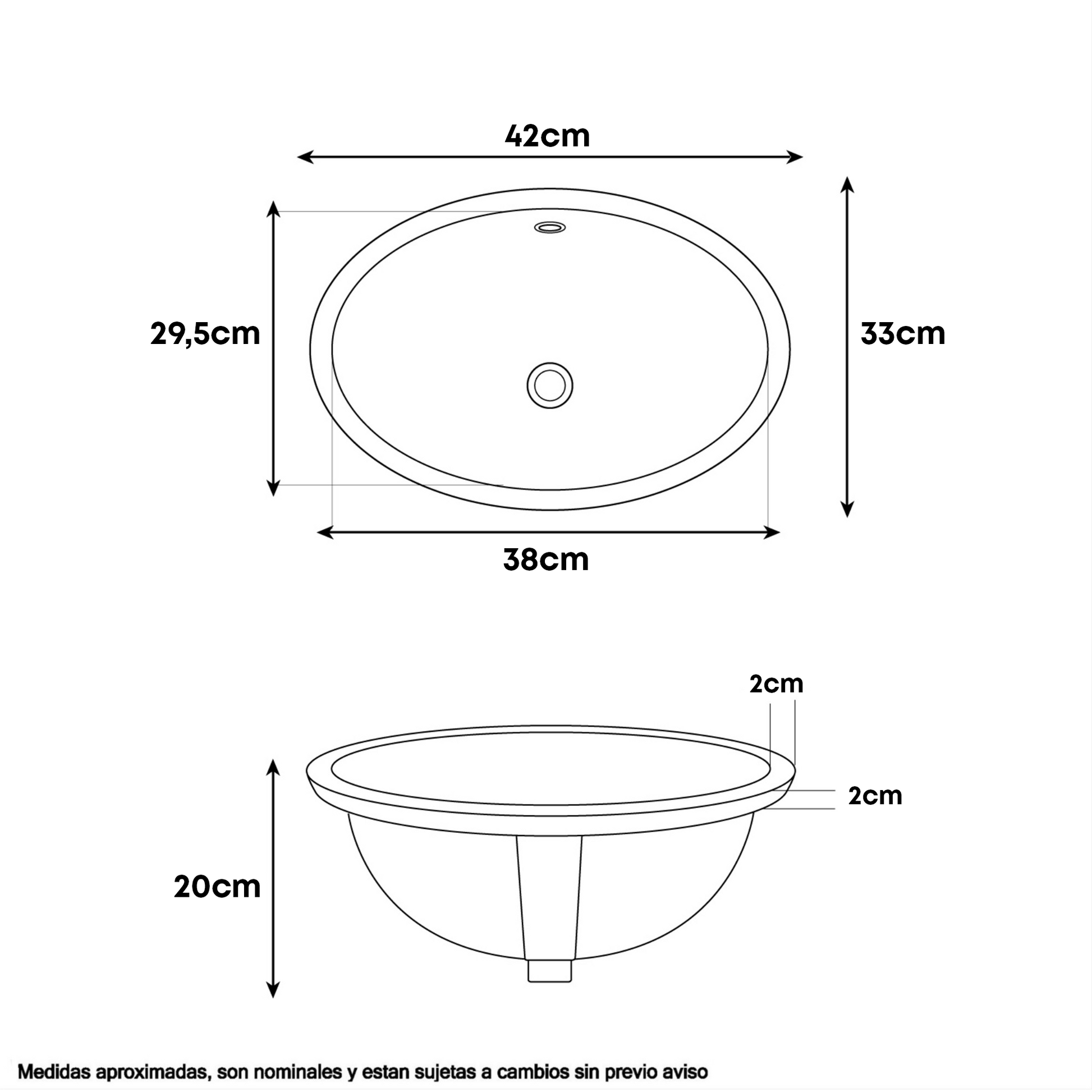 Su forma ovalada combinada con instalación bajo cubierta aporta una apariencia más suave, elegante y contemporánea, mejorando la percepción visual del espacio sin comprometer la practicidad.