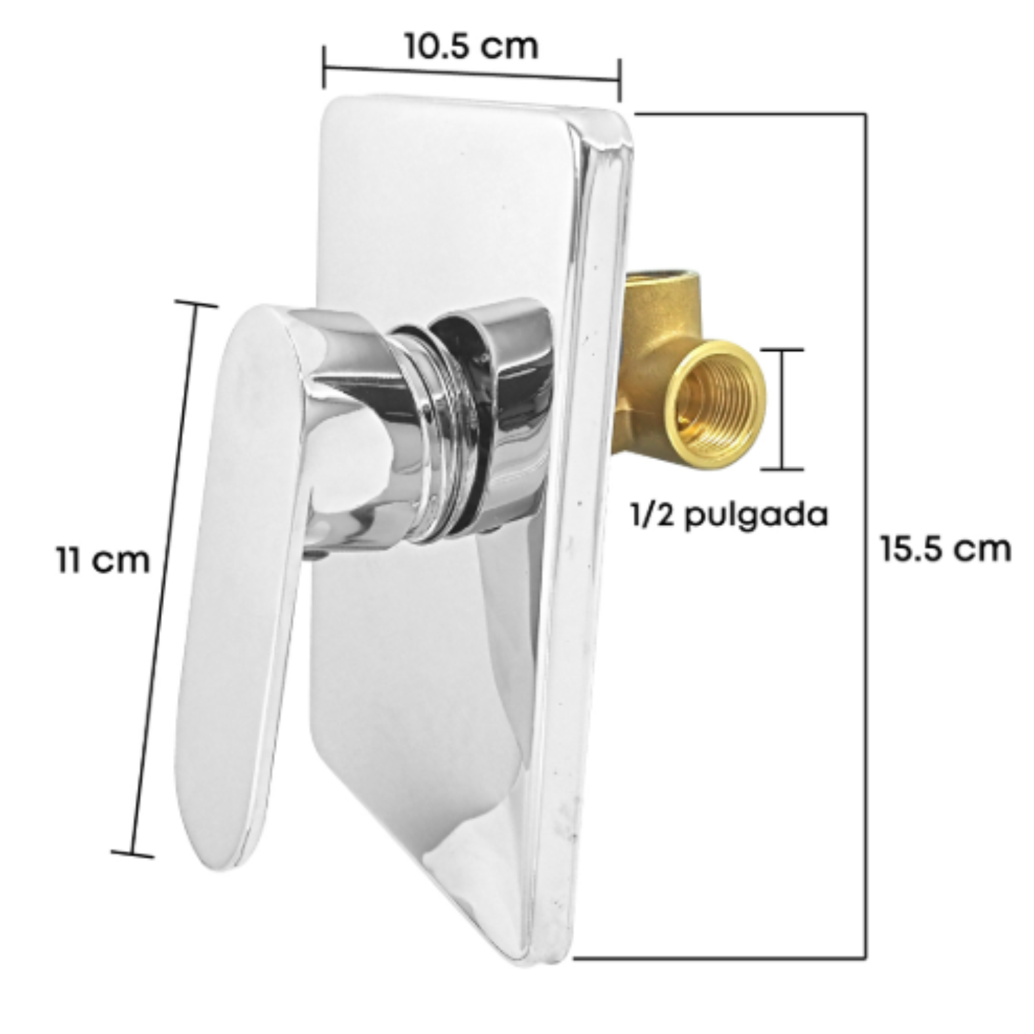 El Monomando Mezclador Ducha Rectangular en cromo brillante de AQUA combina un cuerpo de bronce duradero con un diseño moderno y funcional. Sus medidas de 16 cm x 10.5 cm ofrecen una instalación precisa, mientras que su cartucho de cierre suave asegura una operación confiable para mezclar agua fría y caliente con facilidad. Cuenta con garantía de dos años y respaldo legal. Para preservar su acabado, evite productos abrasivos, ácidos concentrados y herramientas que puedan dañar el cromo; además, se recomienda purgar la tubería antes de instalar para evitar sedimentos.
