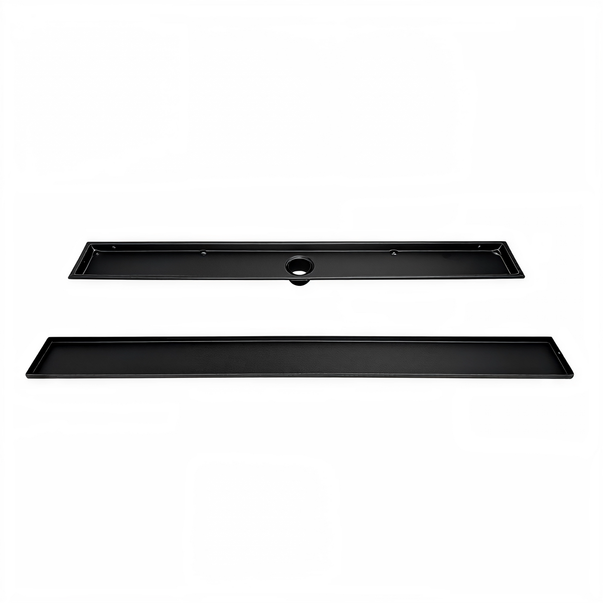 Material: Acero Color: Negro Acabado: Mate Tamaño: 80 cm x 10 cm Tipo: Invisible Desagüe centrado en la canastilla Instalación sencilla |
