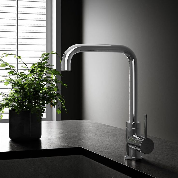 Griferia Lavaplatos Profesional Cuello Flexible Negro Acabado Brillante